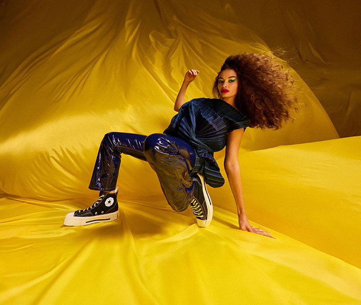 The Chuck 70 De Luxe Squared is the latest addition to the De Luxe family, joining the ranks of the Chuck 70 De Luxe Heel and Chuck 70 De Luxe Wedge. What sets the De Luxe Squared apart is its reinterpretation of the traditional rounded rubber toe cap. Instead of the familiar curve, this iteration has bold, squared proportions. The upper of the shoe features stitched detailing and a reshaped octangular All Star patch. What sets apart this release is the collaboration with Swarovski, a brand over 125 years old, with more than 1,300 individual Swarovski crystals adorning each pair.