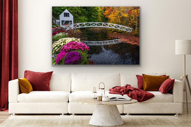 In a room’s interior design, it is important to consider using wall art to create a focal point. This can be a powerful tool to transform a living space from being merely ho-hum to a room that reflects your personality and the desired ambiance of the room. Fine art landscape photography can act as an anchor to your room—providing a certain element that draws the eye to the wall art and creates visual harmony by connecting all the visual elements in the room – it holds them together. Without a focus point, a room may merely seem like a hodge-podge collection of stuff.