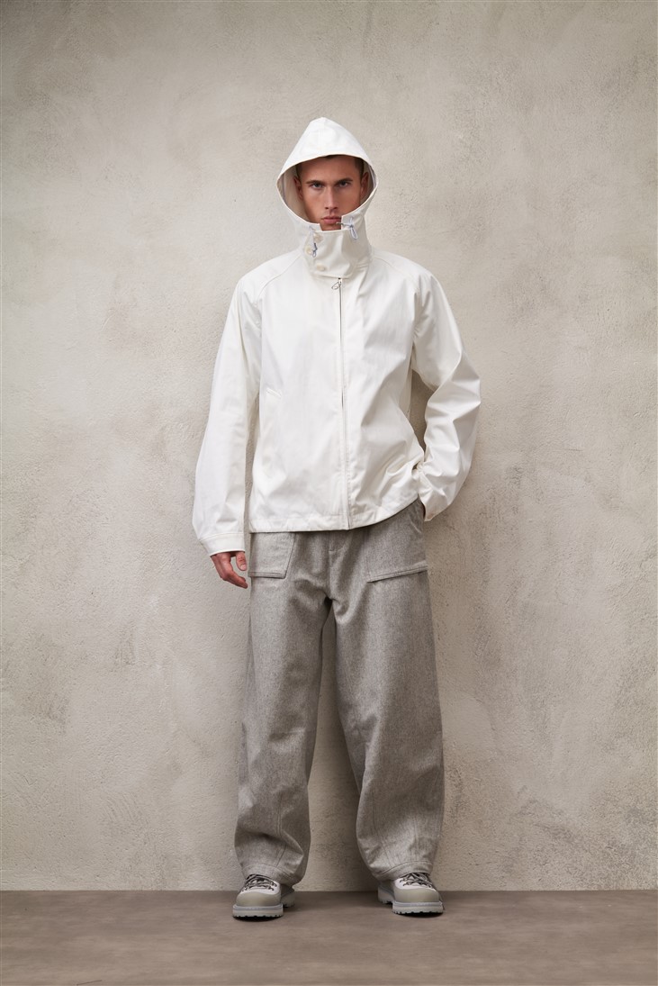 Ten c has also joined forces with Antonia, a fashion retailer, to create an exclusive capsule collection. Thiscollaboration focuses on two of Ten c’s iconic pieces: the Anorak and the Tempest Anorak. Designer Alessandro Pungetti has reimagined these garments using the exclusive OJJ in a striking monochrome white, accentuated with subtle details like tone-on-tone buttons, a reflex hood string, and unique zippers. The jackets also bear a reflex print on the back showcasing the coordinates of Antonia’s two Milan stores.