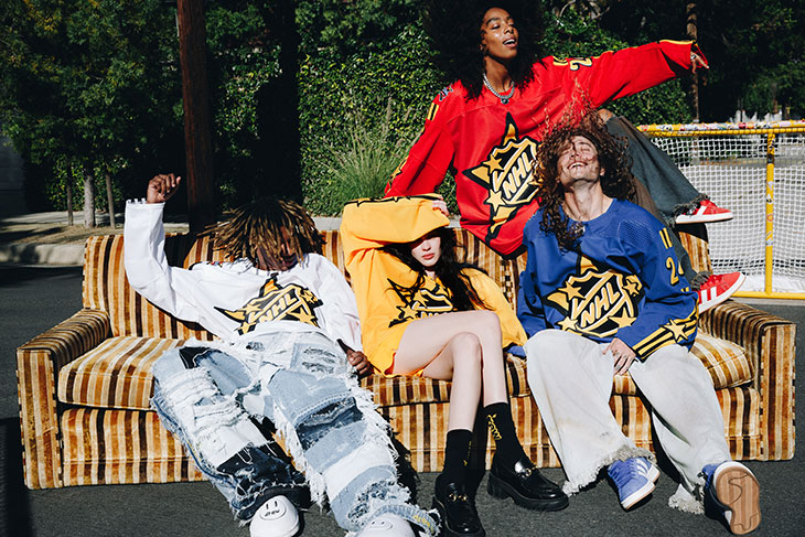 Featuring four jerseys, each representing a different NHL All-Star team, the collection shows vibrant hues of blue, red, yellow, and white. Infused with Drew House’s distinctive yellow and white colors and with bubble letters, these jerseys have an unmistakable sense of youthful and urban aesthetic.