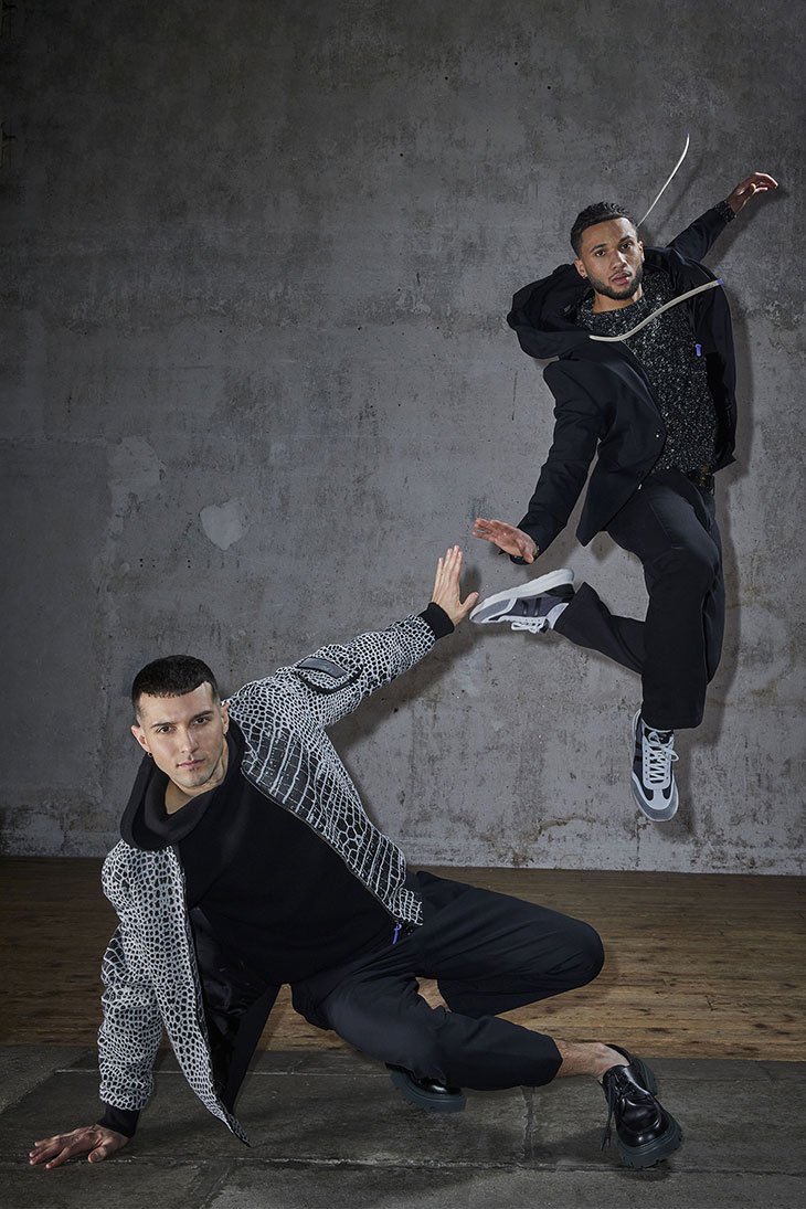 Materials play a crucial role in the collection, with a juxtaposition of raw, rustic textures against traditional menswear fabrics. 3D textures, flannels, felted looks, Prince of Wales checks, pinstripes, hairy bulky coats, blurry jacquards, and engineered cables introduce a tactile diversity to the wardrobe.