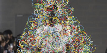 The Noir Kei Ninomiya Fall Winter 2024 collection, named “Iridescence,” is inspired by the mesmerizing play of light through color and texture, showing a significant departure towards experimentation and innovation in fashion design. This season, showed at Paris Fashion Week, focuses on iridescence is not just about a visual spectacle but a thoughtful investigation into the ways fabric and light interact, creating a dynamic and ever-changing palette of colors and effects.