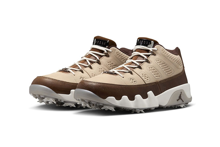 Jordan Brand‘s latest venture into the world of golf is the introduction of a “Masters” colorway for the Air Jordan 9 Golf shoe. Paying tribute to one of golf’s most prestigious events, the shoe is set to launch just in time for The Masters tournament on April 11, 2024. The design incorporates the history of golf into its aesthetic, featuring leather mudguard overlays with a woodgrain texture, harking back to the wooden clubs of the sport’s earlier days.