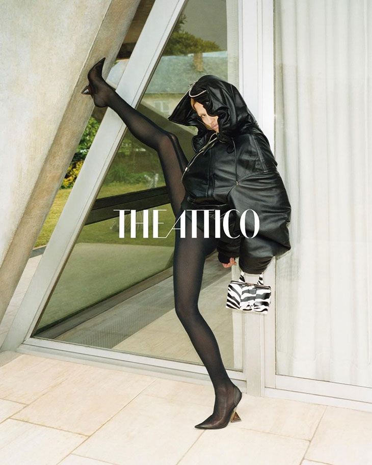 The Attico‘s Fall Winter 2024 bag collection is here, uniquely modeled by Gabbriette. This latest line is a blend of aesthetic extremes—where graphic sharpness meets organic fluidity, and metallic finishes merge with zebra stripes.