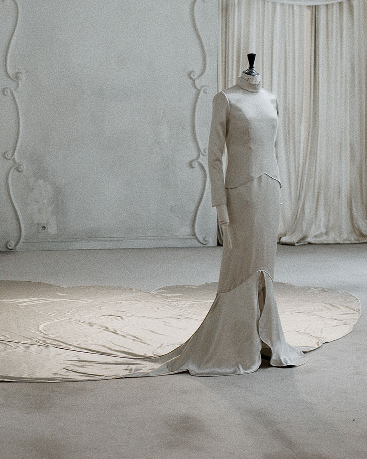 The pearl silk satin gown worn by brand ambassador and award-winning French actress Isabelle Huppert, taking over 300 hours to create, was inspired by a 1930 Callot Soeurs wedding ensemble, reflecting the craftsmanship of Huppert’s great-grandmother’s era. Highlighted in a series of behind-the-scenes videos by Balenciaga, the dress featured labor-intensive techniques such as hand-embroidered tulle and a 14.5-foot scalloped train, along with a vintage effect achieved through meticulous distressing processes.