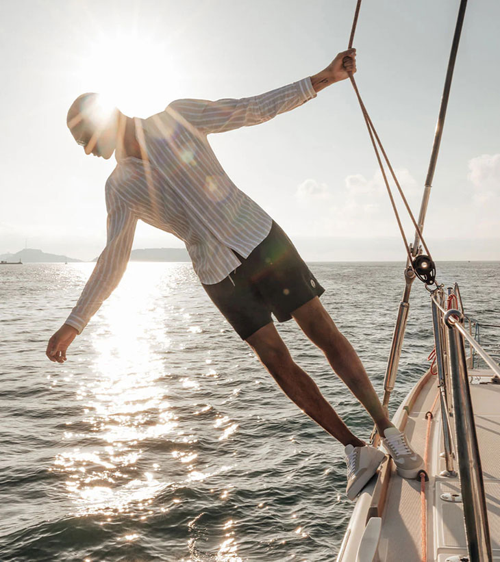 The influence of yachting on menswear can be traced back to the maritime traditions of European aristocracy, where functionality met finesse. However, today the quintessential yachting attire is not just a nod to nautical aesthetics but also of practical luxury. Key elements include blazers in navy or crisp white, paired with well-fitted slacks or chinos. These pieces are often crafted and knit out of finest materials, from silk to merino wool.