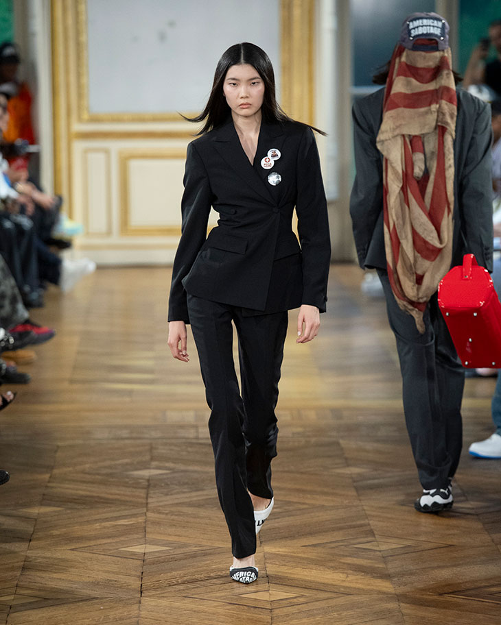 Adding a unique touch to the runway, clear garbage bags were transformed into beanbag chairs by A$AP Rocky’s home furnishings brand, Hommemade, in collaboration with Crosby Studios. The show was accompanied by a soundtrack featuring tracks from A$AP Rocky’s forthcoming album.