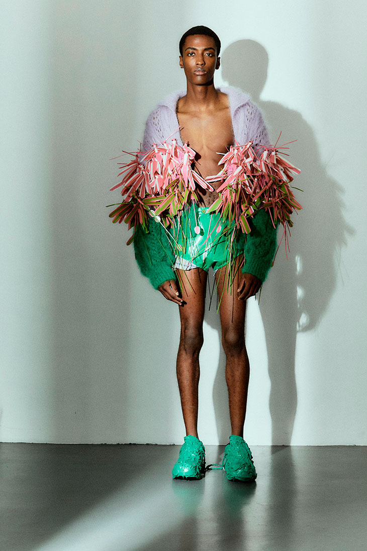 The collection’s emphasis on exposed skin is a metaphor for the ambiguous and evolving nature of relationships. By not requiring definitive results from these relationships, the focus shifts to the experience and journey of love itself. This philosophical approach to fashion mirrors the collection’s designs, celebrating the process of creation and the beauty found in imperfection and transience. See all the looks from the collection in the Gallery below: