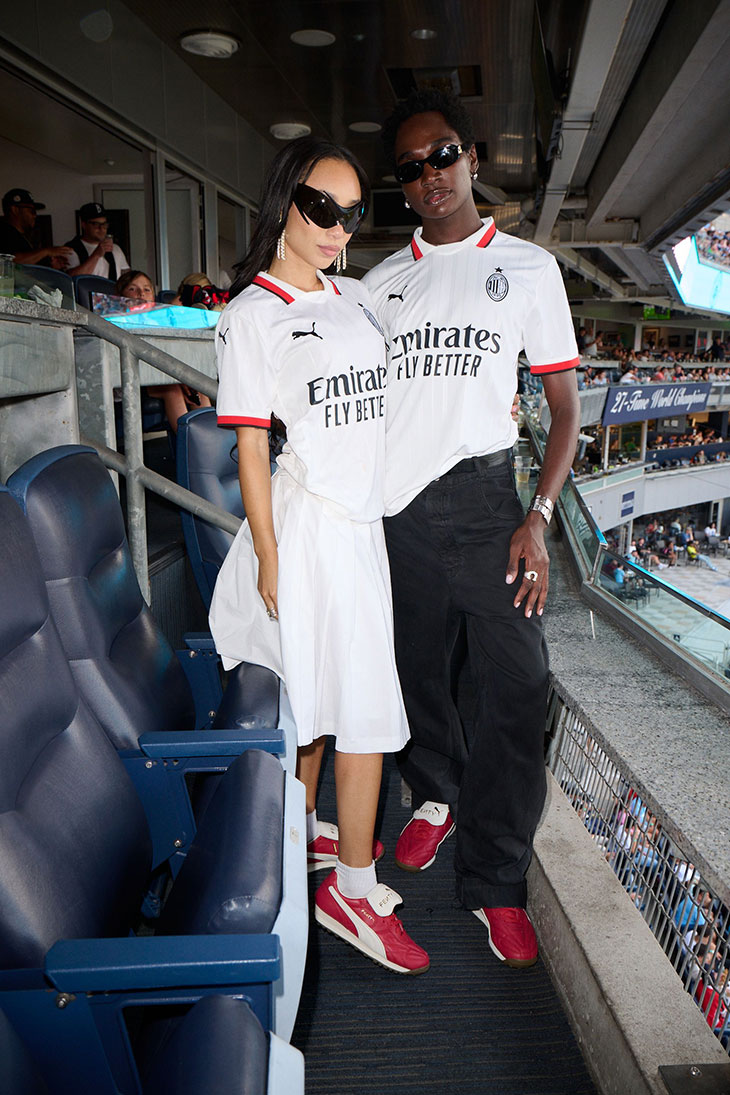 Rihanna added her star power to the Manchester City vs. AC Milan match at Yankee Stadium in New York City. The global icon introduced the latest addition to the PUMA family, the upcoming FENTY x PUMA Avantis. The match served as a perfect backdrop for Rihanna to introduce the highly anticipated footwear, blending her signature style with PUMA’s athletic edge.
