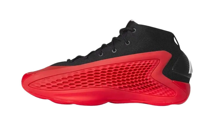 To quickly jump out of the Nike universe we are going to one of personal favorites, the adidas AE 1 Georgia Bulldogs edition. The adidas AE 1 design this time incorporates a unique, warped honeycomb pattern also giving you superior ventilation. The tongue tag features Edwards’ distinctive personal logo, and the familiar three-bar adidas symbol is featured on the external heel counter in stark white. The adidas AE 1 ‘Georgia Bulldogs’ steps out in style, proudly displaying the iconic nuances of Anthony Edwards’ alma mater. This adidas sneaker masterfully merges a black mesh upper with expansive TPU support wings, all set off in quite a vibrant choice of crimson.