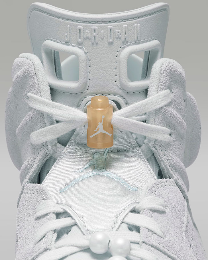 The Women’s Air Jordan 6 “Pearl,” set to release on August 7, 2024, features a luxurious design inspired by the elegance of Paris. This version of the sneaker has a grey suede upper complemented by metallic silver leather overlays. Gold accents on the Jumpman logo, lace lock, and heel spoiler add some fine touches evoking the Olympic games. The midsole is a base grey color, topped with an icy translucent outsole that houses a visible Air unit for enhanced cushioning. Retailing at $200, this model will also be available in preschool and toddler sizes, priced at $90 and $75.