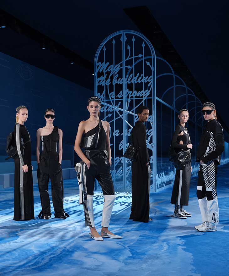 As the backdrop for this collection, the upcoming Olympic and Paralympic Games in Paris 2024 resonate deeply with themes of gender equality, inclusivity, and self-acceptance. Chiuri invited artist SAGG Napoli, who integrates archery into her performances, to showcase her craft on the runway. This collaboration serves as a reminder of the strength found in both mind and body, as expressed in the phrase: “May the building of a strong mind and a strong body be the greatest work I have ever made.”