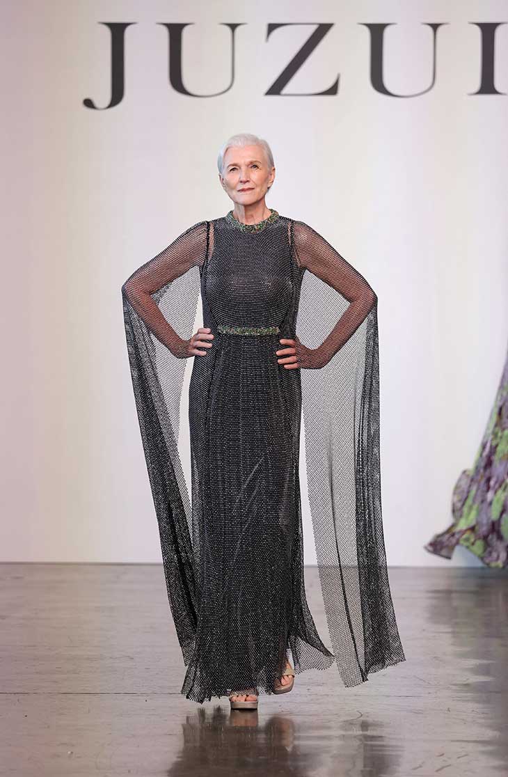 NEW YORK, NEW YORK – SEPTEMBER 10: Maye Musk walks the runway for the Juzui SS25 Collection during September 2024 New York Fashion Week: The Shows at Canoe Studios on September 10, 2024 in New York City. (Photo by Thomas Concordia/Getty Images for Juzui)