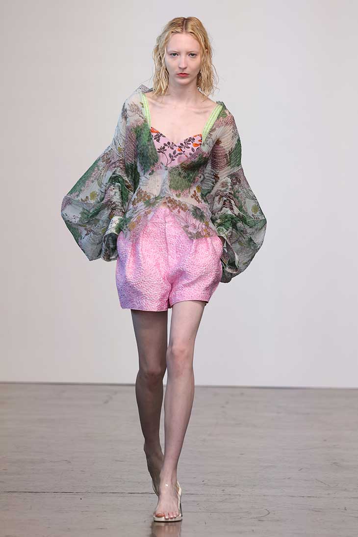 JUZUI returned to New York Fashion Week for SS25 with a collection that embraced the beauty and symbolism of florals. Titled “Floriferous,” the collection is a continuation of the themes explored in the brand’s Fall/Winter 2024 debut, “Full Bloom.” Under the direction of Taoray Wang, JUZUI’s latest offering paid homage to the Chinese peony, a flower rich in cultural significance, while exploring the essence of florals through a modern lens. This collection, a love letter to the flower, reimagined the peony as a symbol of both tradition and contemporary femininity.