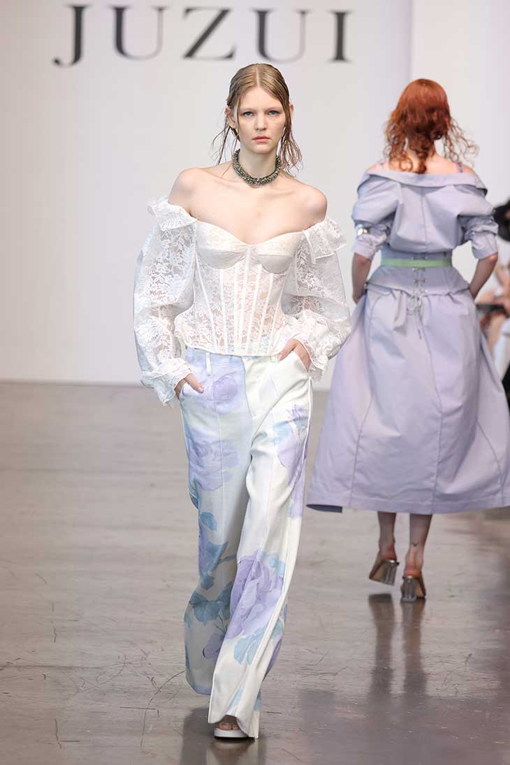 Wang’s commitment to creating fashion that reflects both the modern era and traditional Chinese aesthetics was clear throughout the show. As the collection bloomed on the runway, it was evident that JUZUI is blossoming into a brand that not only respects its heritage but also looks confidently toward the future, with a keen understanding of the modern woman’s needs.