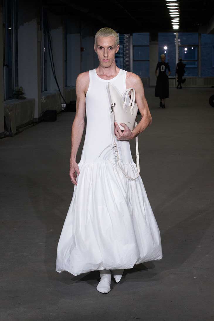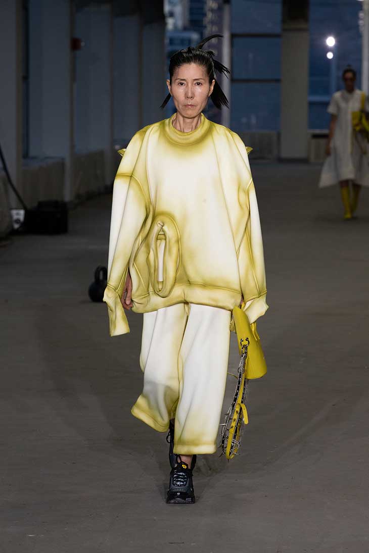 For the SS25 season, MELITTA BAUMEISTER took her signature sculptural aesthetic to new heights, debuting her collection on the runway for the first time. Known for her exploration of bold volumes and expressive silhouettes, Baumeister’s approach reframes the body, creating a space that challenges conventional ideas of beauty and fit. This season, the designer emphasized inclusivity by casting models representing a range of ethnicities, abilities, body types, and ages.