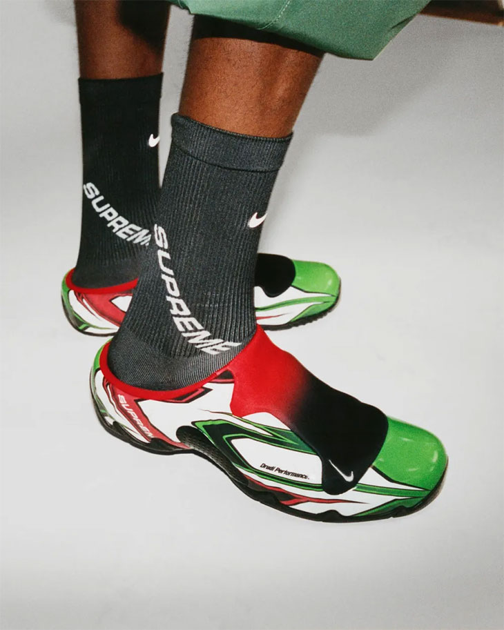 In addition to the Clogposite, the collaboration extends to a Nike Crew Sock, sold separately but designed to complement the sneakers. This partnership marks a seamless blend of Supreme’s streetwear ethos with Nike’s athletic heritage.