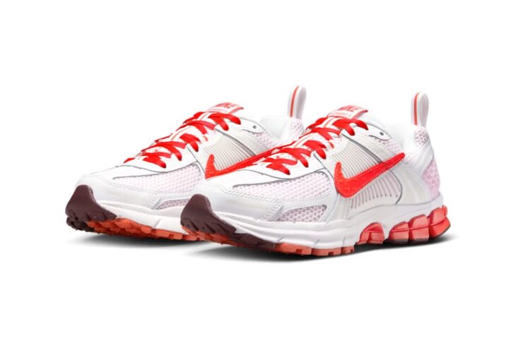 Meanwhile, the Zoom Vomero 5 leans into a softer palette. Its white and baby pink mesh upper radiates subtle charm, accented by bright red details for a dynamic pop. This harmonious color blend perfectly encapsulates the essence of the holiday for Air Force 1 Valentines Day 2025, offering a cheerful yet sophisticated option for young sneaker enthusiasts.
