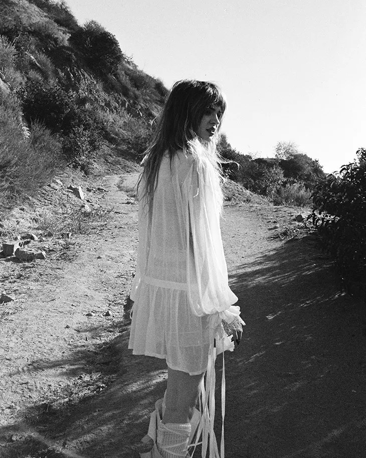A highlight of the shoot took place in the Hollywood Hills, where the team captured Sophie Thatcher amidst the serene golden light while playing Belle and Sebastian’s “The Boy with the Arab Strap.” Gallici recalls how the moment felt almost predestined, as though the project’s direction was set before it began.