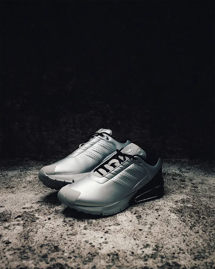 At the center of the collection stands a revival of the Y-3 A3 Control sneaker, an early 2000s silhouette that defined a specific period in Y-3’s output. The new version uses platinum silver leather and cashmere suede to build depth across the upper. Its sculpted shape sits atop adidas’ A3 cushioning at the heel, reinforcing its performance origins. Perforated three-stripe detailing appears on the sidewall, with a single emerald green Y-3 logo placed on the heel tab. The shoe’s layered construction references adidas innovation from the archive while adapting it through Y-3’s stripped-back language.