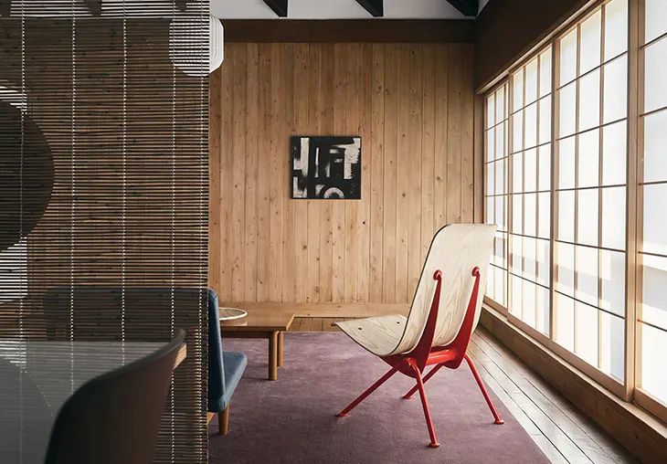 Structurally, the chair retains the same ingenuity that made it a technical marvel in the post-war design landscape. A tubular metal brace connects the legs for added stability, while sheet metal brackets support the seat shell with minimal visual interruption. This limited edition brings back the original Rouge Corsaire powder-coated finish, an archival Prouvé colour that underscores the design’s industrial elegance.