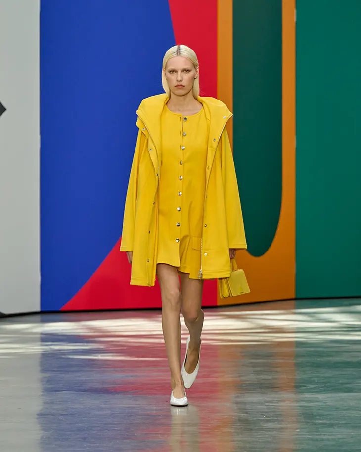 Color and line set the rhythm for Akris Spring 2026. Albert Kriemler found inspiration in Leon Polk Smith, the American artist whose sharp use of geometry continues to spark dialogue in design. Kriemler referenced Smith’s view that his work stood as the opposite of minimal, a reminder that reduction does not always equal essence. For Akris, essence means clarity of form and fabric, where the wearer comes forward as the true subject.