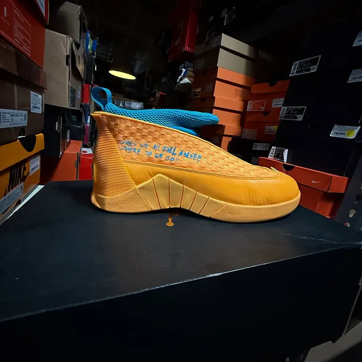 Eilish’s connection to the Air Jordan 15 runs deep. She has previously cited the silhouette as her favorite Jordan model, appreciating its angular, unconventional form and the divisive reaction it often evokes. Her first collaboration with Jordan Brand featured a tonal beige version, while this unreleased sample takes a darker, more expressive turn.