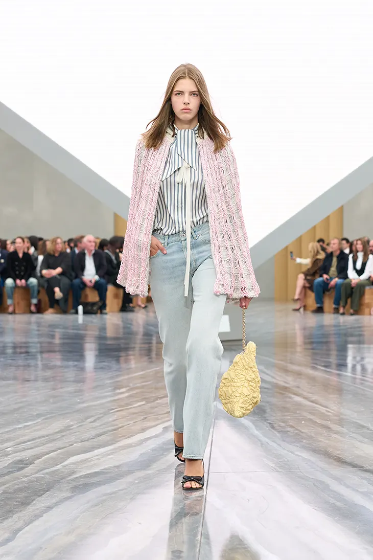 The collection develops around harmony and tension. Signs drawn from Dior’s long history form a vocabulary that speaks through the silhouette. Past and present appear in constant conversation, while grand references meet everyday elements. The designs express themselves through Dior’s chromatic language, soft and pictorial yet punctuated by sharp breaks. Each garment demonstrates technical mastery, producing elegance even in pieces that appear simple.