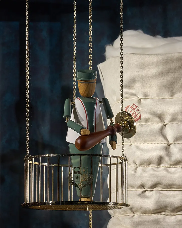 The installation reinterprets Loro Piana’s codes through intricate craftsmanship and materials, bringing a sense of Art Deco refinement to Bergdorf Goodman’s iconic windows. Each vignette narrates the Maison’s story of excellence since 1924, while wooden puppets representing its artisans animate scenes in warm tones of gold, brown, and green.