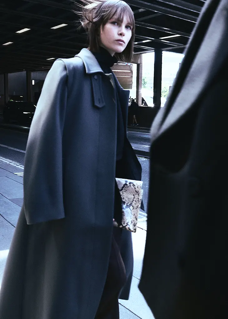Textures define the lineup. Faux-fur finishes, jacquards, and corduroy bring a tactile richness, contrasted with technical fabrics that add an urban sharpness. Italian wool tailoring sits alongside outerwear cut with minimal edge, while slouchy silhouettes balance sharp hems and cropped cuts. The approach feels dynamic yet grounded in function, marrying nostalgia with contemporary energy.