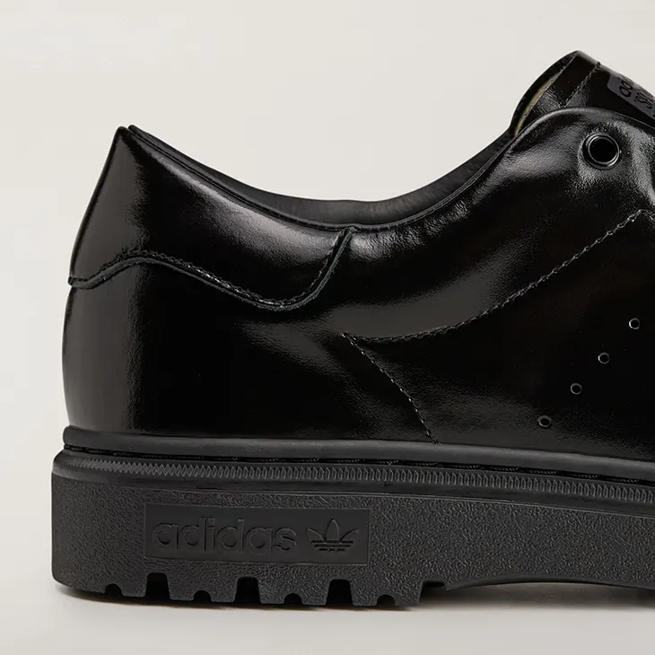 This collaboration extends the legacy of the Stan Smith as a versatile canvas for reinvention. From luxury reinterpretations to pop-culture tributes, the model has long served as a foundation for creative experimentation. The SpongeBob edition continues that lineage, offering a version that feels both collectible and wearable. While it carries playful references to the underwater character, its black patent construction ensures it maintains a subtle, polished appearance suitable for everyday wear.