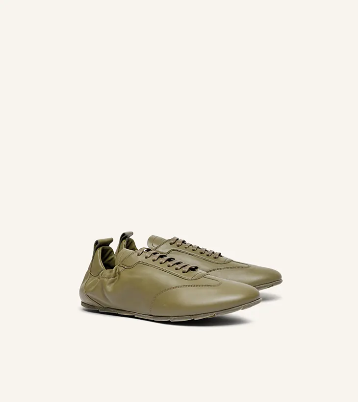 Flats arrive in luminous colors, offering lightness and ease, while slip-ons push toward stronger silhouettes with chunkier proportions. The Timeless Sneaker continues its evolution with a featherlight build, offered in vivid shades that reflect the summer palette.