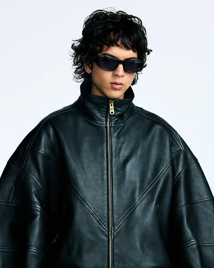 The FW25 collection itself extends the brand’s language of dualities, strength and softness, refinement and street, familiarity and disruption. Repetition of looks across the cast underscores the adaptability of the garments, each piece fluid enough to transcend gender, community, and convention. Oversized silhouettes, dropped shoulders, and wide-legged trousers mark Chavarria’s signature codes, while razor-sharp tailoring collides with the ease of sportswear. The result is a wardrobe that resists confinement, carrying both dramatic tension and effortless wearability.