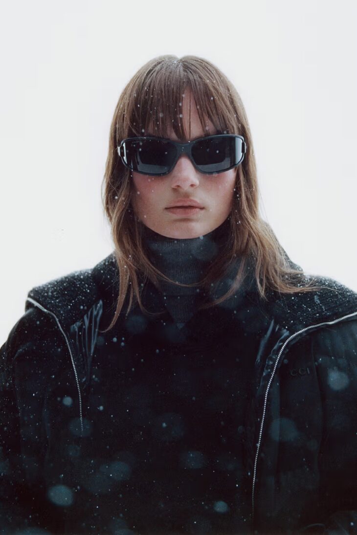 Designed for skiing, snowboarding, and cold-weather performance, the collection features technical outerwear, water-resistant jackets with ski-pass pockets, padded layers, eyewear, ski masks, and wraparound sunglasses. Accessories extend into equipment for the first time, with skis, snowboards, and helmets produced in collaboration with HEAD, marking Gucci’s first entry into functional winter gear.