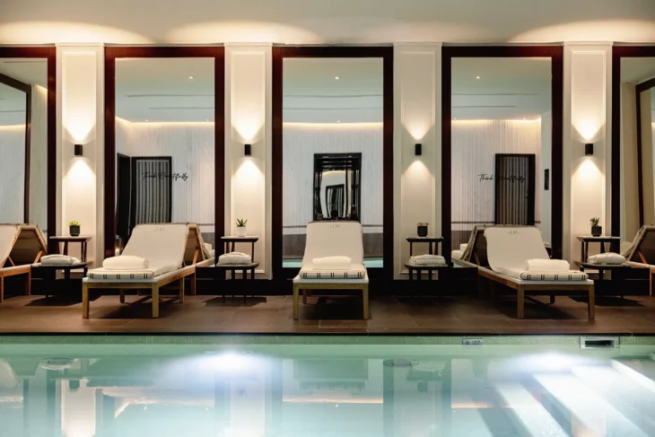 J.K. Place Paris is a sanctuary for wellness. The hotel’s spa features an impressive indoor swimming pool, sauna, and steam room, providing a tranquil escape from the city’s energy. Fitness enthusiasts will appreciate the state-of-the-art Technogym equipment and the option for personal training, yoga, or Pilates sessions on request. The partnership with Noble Panacea brings a suite of high-tech, science-driven treatments to the spa, including anti-ageing therapies and nourishing skincare, all designed to promote radiant, healthy skin. Every element, from the Florentine Lorenzo Villoresi fragrances to the Alma K amenities, has been chosen for its quality and provenance. A signature sentiment present throughout the hotel.