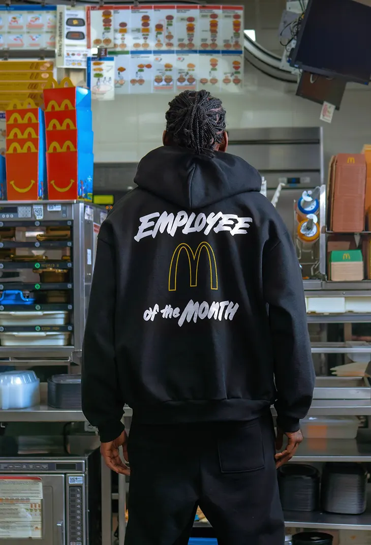 The collaboration creates a bridge between McDonald’s long-standing cultural presence and Sylvester’s rise within sport and style. His career has taken him far from the counter where he once clocked in, yet the connection between the two points feels direct in this capsule. He sets the phrase within the present, allowing it to serve those who continue to push forward in their own ways.