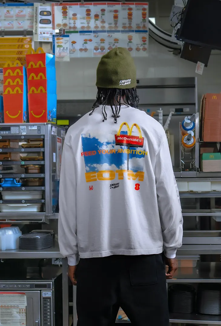 The collaboration connects directly to McDonald’s “1 in 8” initiative, which calls attention to the large number of Americans who held their first job at the fast-food chain. Sylvester uses this context as a foundation rather than a slogan. He takes the familiar “Employee of the Month” title and shifts its meaning, presenting it as a marker for people who build their careers through ambition and focus instead of narrow checklists. The title becomes a point of recognition for those who push through their own paths with consistency and self-direction.