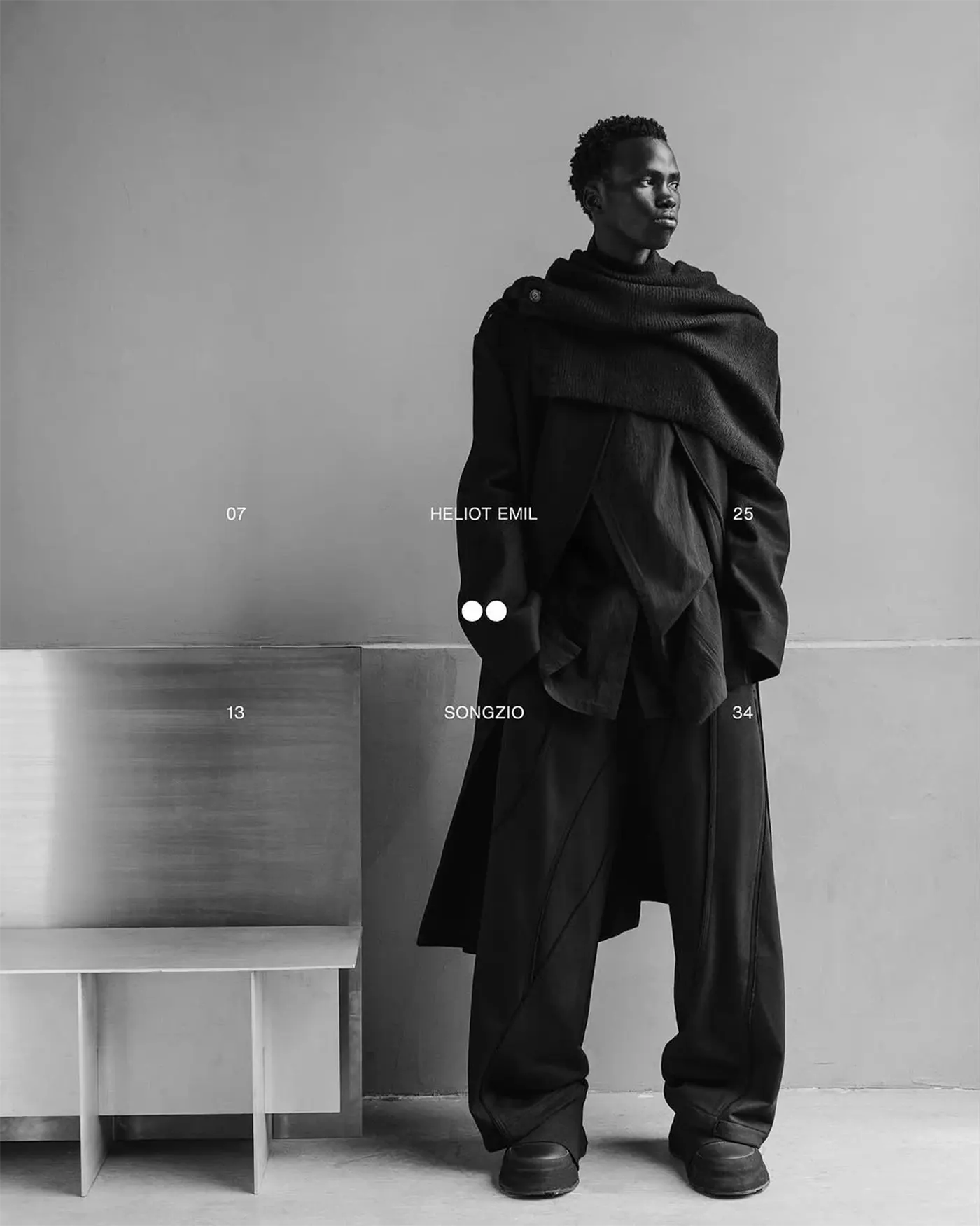Beautifully captured by photographer Alberto Cantu, the lookbook features Kerlual-Thak (Menace Models, Select Models Paris, YUMODELS Milan), embodying the collection’s spirit of strength and refinement. Creative direction is led by the creative directors of the brands Julius Juul from Heliot Emil and Jay Songzio from Songzio, with casting by George Raymond Stead.