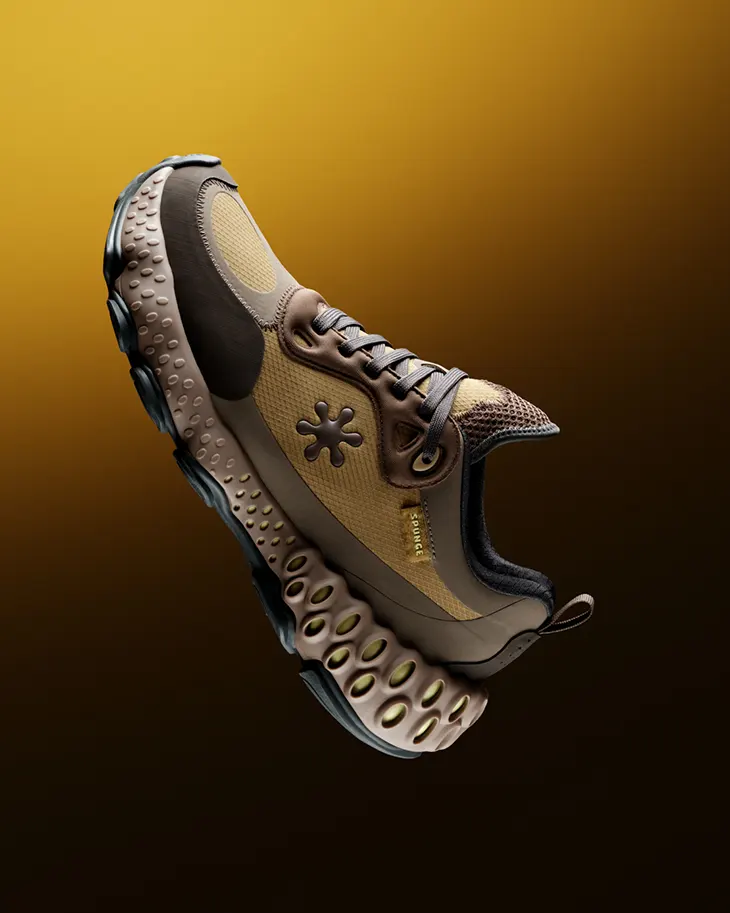 Rooted in Bembury’s function-meets-nature design language, SPUNGE continues to explore material innovation and thoughtful form. The Osmosis silhouette reflects the designer’s emphasis on natural contours and organic geometry, translating his years of industrial design experience into an accessible, performance-driven sneaker. With its sculptural sole and biomorphic lines, the model mirrors the geological textures and natural patterns often seen throughout Bembury’s work.