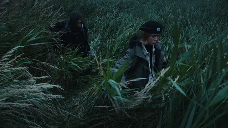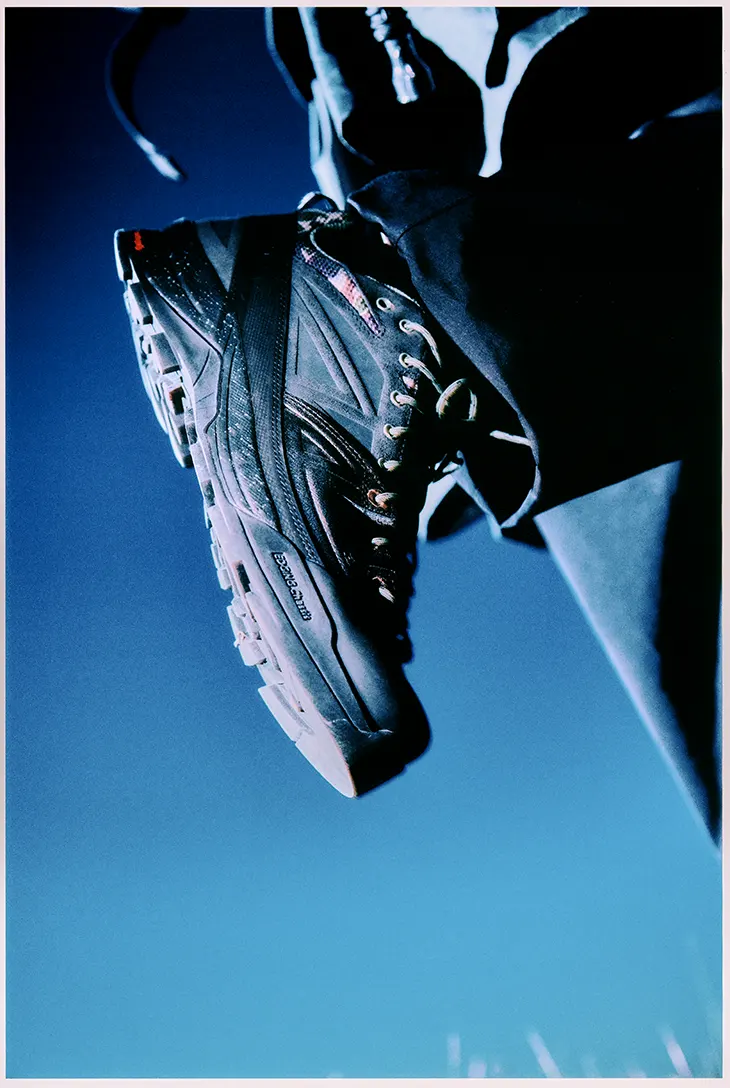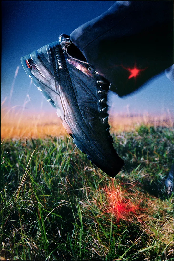 The accompanying campaign extends this disciplined approach into a narrative space. Directed by Bailey Marklew, the visuals unfold in a remote research outpost affected by electromagnetic disturbances and distorted gravitational forces. The setting establishes a tense, isolated environment where a team of researchers attempts to uncover the cause of these anomalies. The atmosphere feels unstable and uncertain, mirroring the shoe’s readiness for demanding terrain. As the campaign progresses, an unseen presence begins to emerge. The figure remains largely imperceptible, revealed only through writhing, thread-like tendrils that move through the frame.