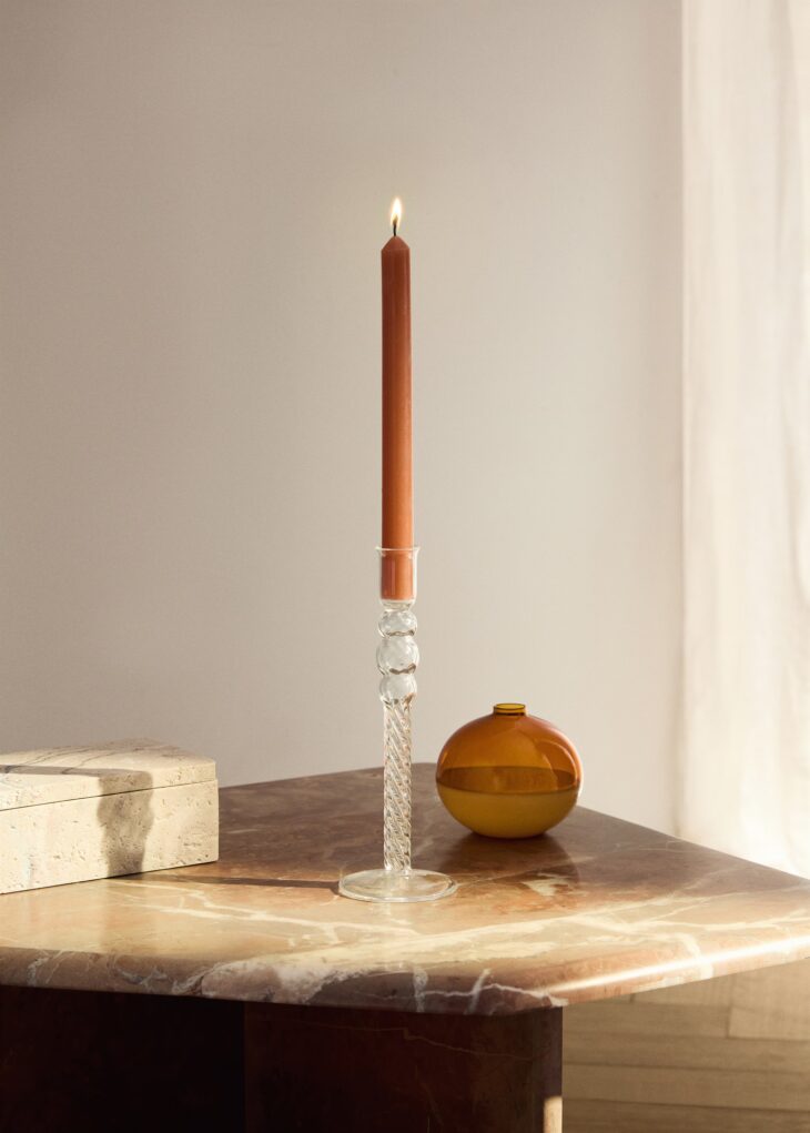 Mango’s borosilicate candelabra brings a sculptural note to the season with its transparent Ice Grey finish and spiral stem that catches light with quiet precision. Made from 100% borosilicate glass, it stays minimal yet visually distinct, giving any room a subtle architectural accent. Its shape feels adaptable, sharp enough for a modern interior, soft enough for a lived-in space, and it pairs easily with the rest of Mango’s glass collection. At $29.99, it lands in the sweet spot between accessible design and considered gifting, offering a piece that adds presence without overwhelming the room.