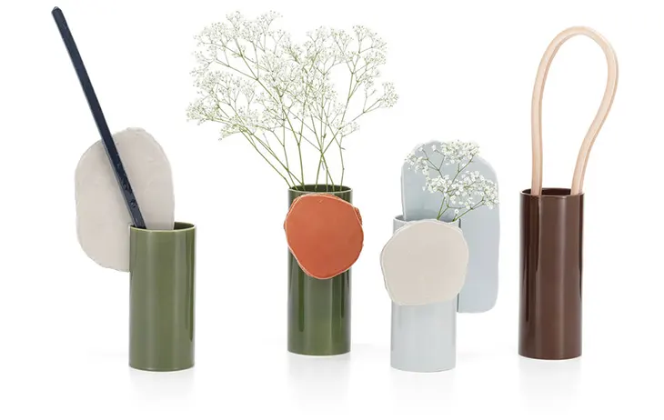 Vitra’s Blue & Off-White Découpage Vase brings a sculptural approach to tabletop objects through a glazed ceramic form designed by Ronan and Erwan Bouroullec. The cylindrical vase stands on its own, while detachable abstract clay ornaments allow the composition to shift between arrangements, turning the piece into a flexible object rather than a fixed design. Finished in the Feuille colorway, the contrast between blue ceramic and off-white elements emphasizes surface, volume, and proportion. Whether assembled in full or pared back to its simplest form, the Découpage Vase functions as both a vessel and a quiet architectural accent.