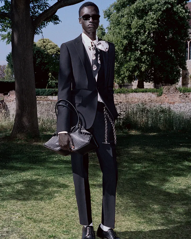 Through form, tension, and reinvention, the McQueen Spring Summer 2026 Pre-Collection shapes a narrative of revelry set against historic space, where youth bends tradition and creates its own measure of sophistication.