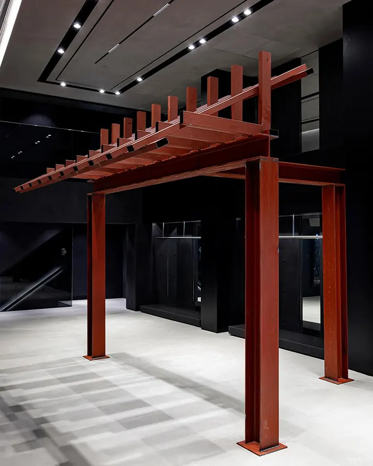 Kim approaches this meeting of materials as an event rather than a design exercise. The works suggest moments where different eras appear to borrow duration from one another. Antique surfaces meet polished steel planes, and familiar forms give way to altered proportions and unexpected structures.