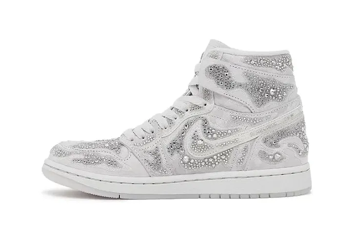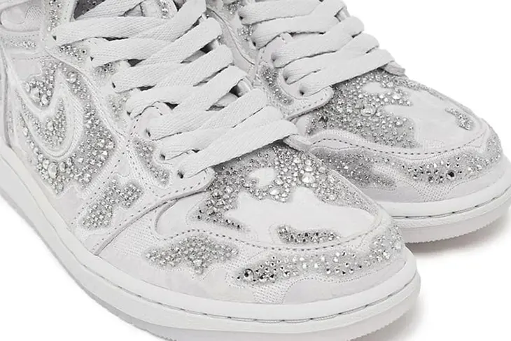 The Air Jordan 1 High OG receives a new Swarovski treatment, using crystal sections to shape the shoe’s visual rhythm.