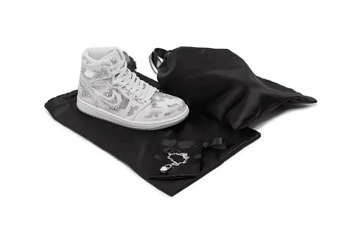 Swarovski and Jordan Brand also extend the concept beyond the sneaker itself. Each pair includes premium packaging designed to mirror the care put into the shoe. Dustbags accompany the release, along with a special collaborative chain that reinforces the partnership’s identity.