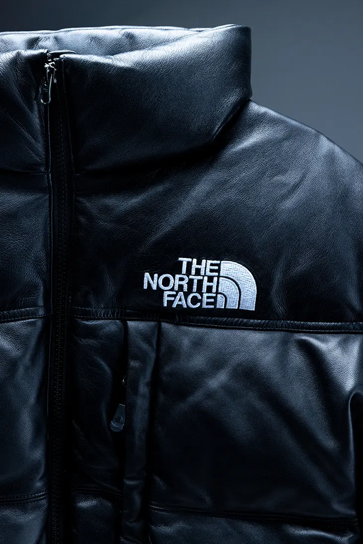 The Summit Jacket sits at the center of the lineup. It pulls cues from The North Face’s archive, especially classic summit detailing that has guided many outerwear pieces over the years. The jacket uses supple sheepskin leather that gains character as it ages. Its construction features 700-fill down insulation, which creates full, pillowy baffles that support warmth during colder days. The jacket presents a familiar TNF form with a new skin, giving it an elevated presence without losing its origin as functional outerwear.