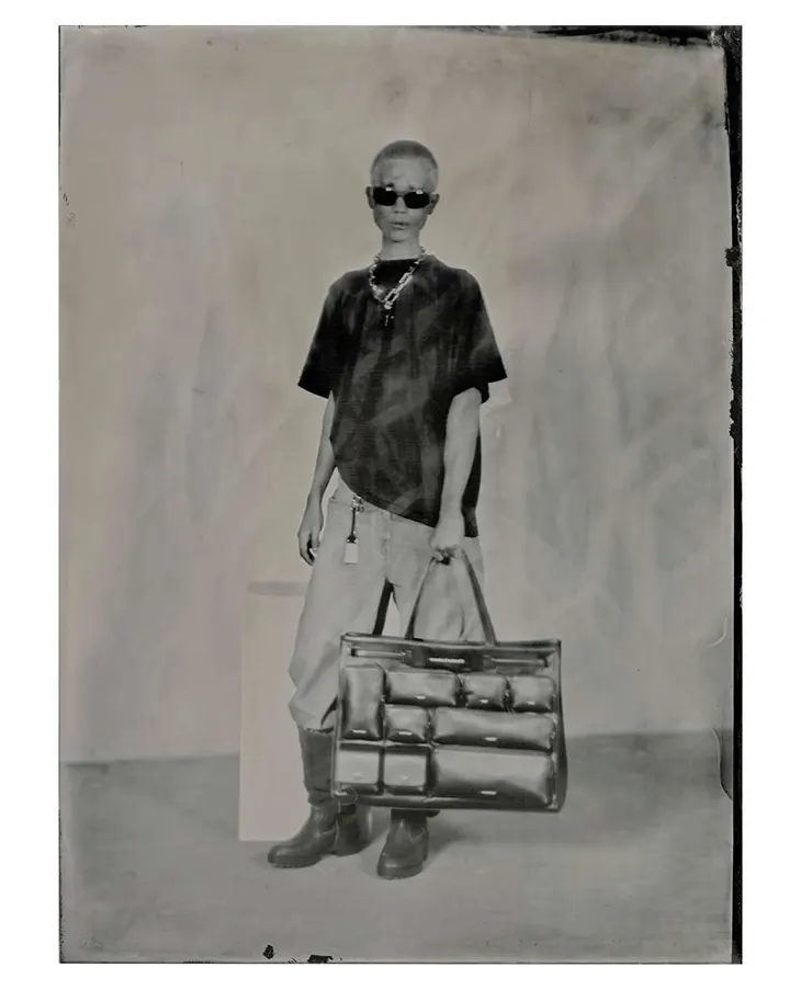 A separate photographic installation presents pieces from the collection captured using early photographic techniques. Each image forms under a cloth and develops by hand through silver and chemical processes, allowing forms to surface gradually.