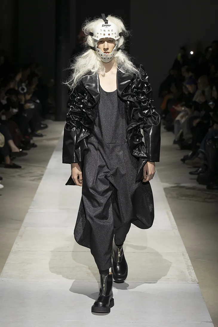 Comme des Garçons Homme Plus unveiled its Fall Winter 2026 collection, titled Black Hole, that examines confinement and the possibility of exit through menswear form. The idea of the black hole functions as a condition shaping how tailoring, proportion, and surface operate throughout the collection.