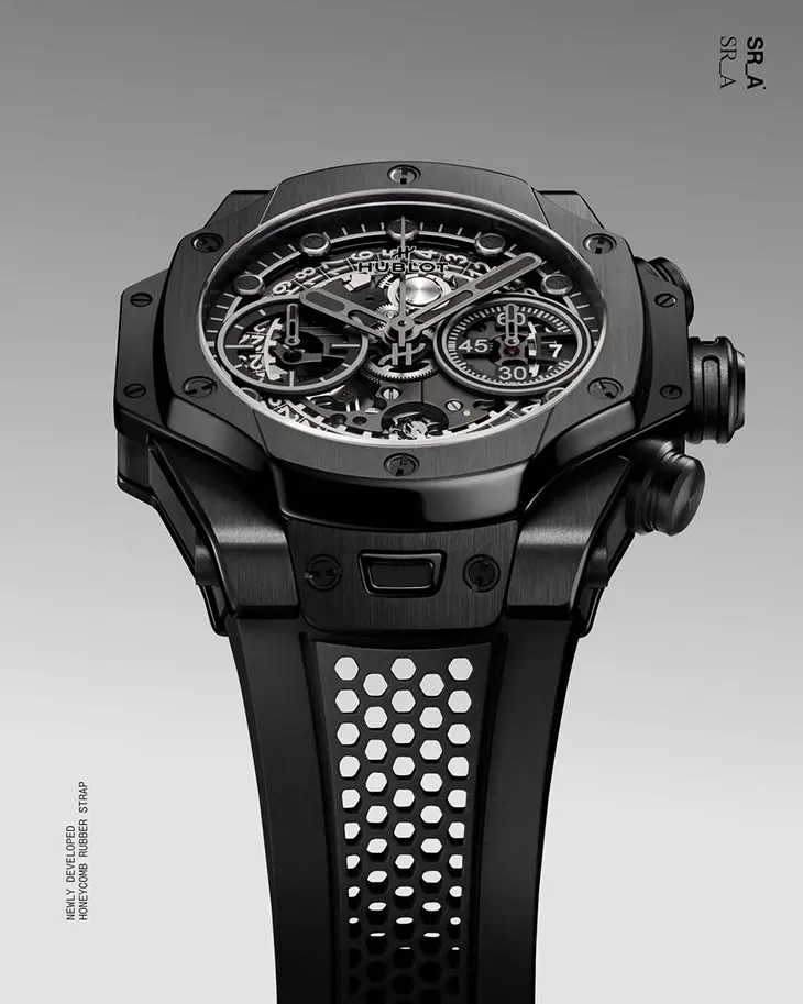 The Big Bang Unico SR_A sets a new benchmark within the Hublot and Samuel Ross partnership. By moving from tourbillon to chronograph, from 50 pieces to 200, the collaboration becomes more widely available without sacrificing the design integrity that has defined the SR_A series. The all-black ceramic execution, the signature honeycomb strap, and the exposed Unico architecture create a timepiece that functions as both wearable sculpture and practical instrument.